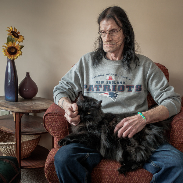 Now, forty seven years later, I volunteer at the Turning Point Center in Brattleboro. When I’m not facilitating group recovery meetings, I make photographs of the people I meet at the center and listen to their stories.